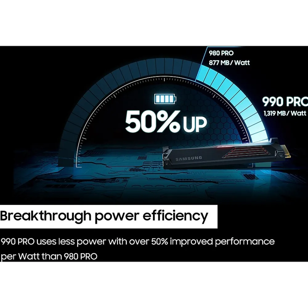 - Use less power and get more performance. Enjoy up to 50% improved performance per watt over 980 PRO, plus optimal power efficiency with max PCIe4.0 performance