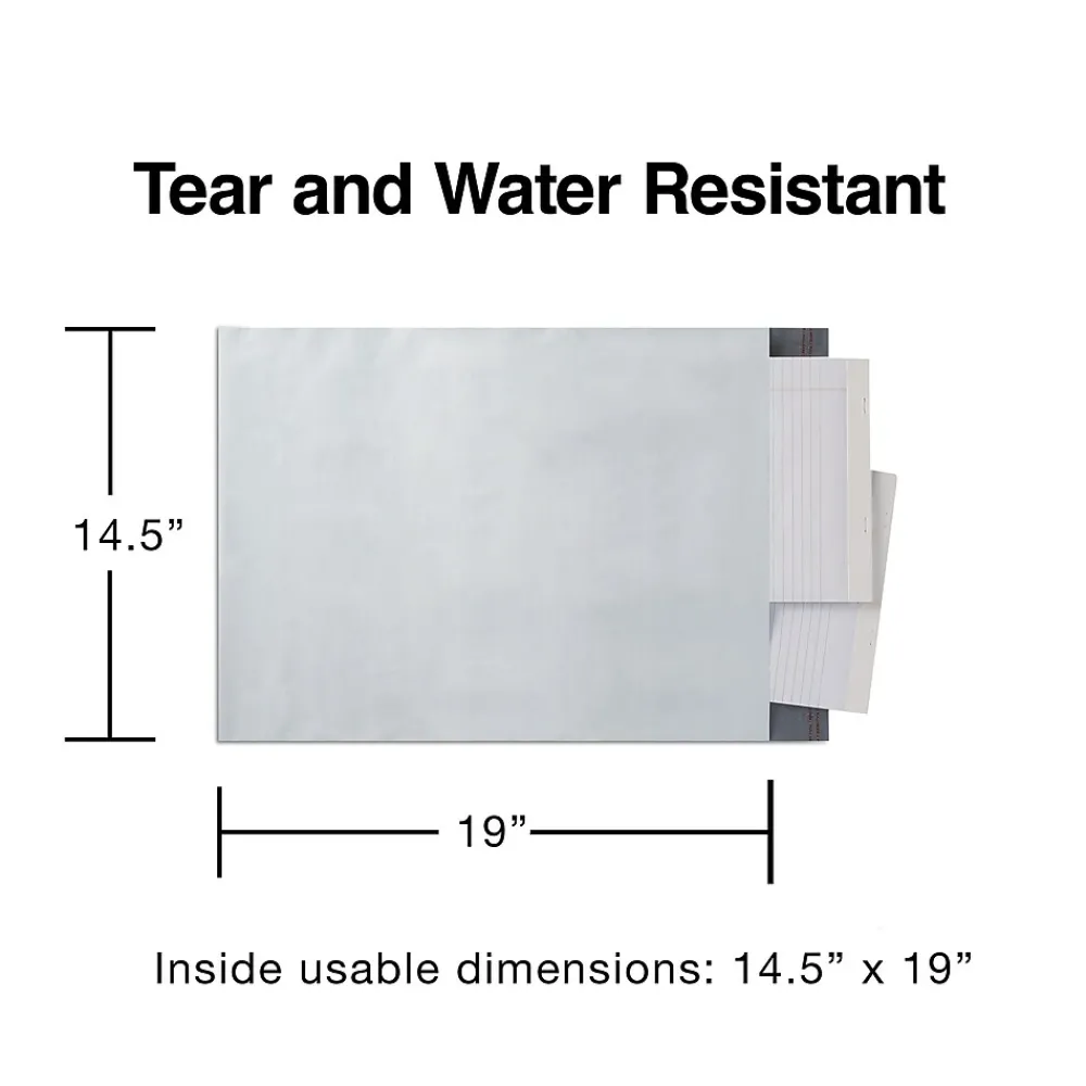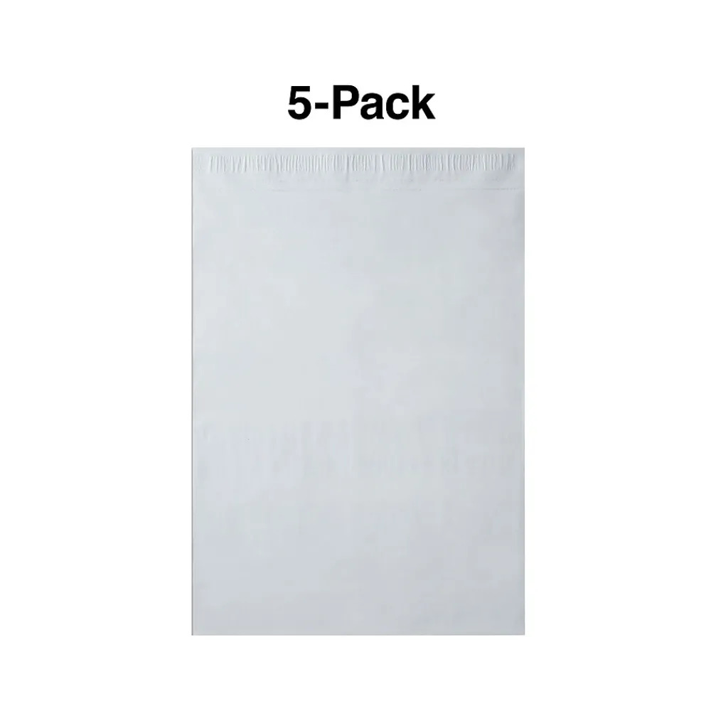 Protect documents and products against punctures during shipping with these tear-resistant poly mailers. The adhesive closure keeps water and contaminants from entering once sealed, while the flexible material ensures items of varying shapes and sizes fit inside. This 5-pack of Staples 14.5 x 19-inch white peel-and-seal poly mailers features writable surfaces that accept labels and stamps for simple mailing.