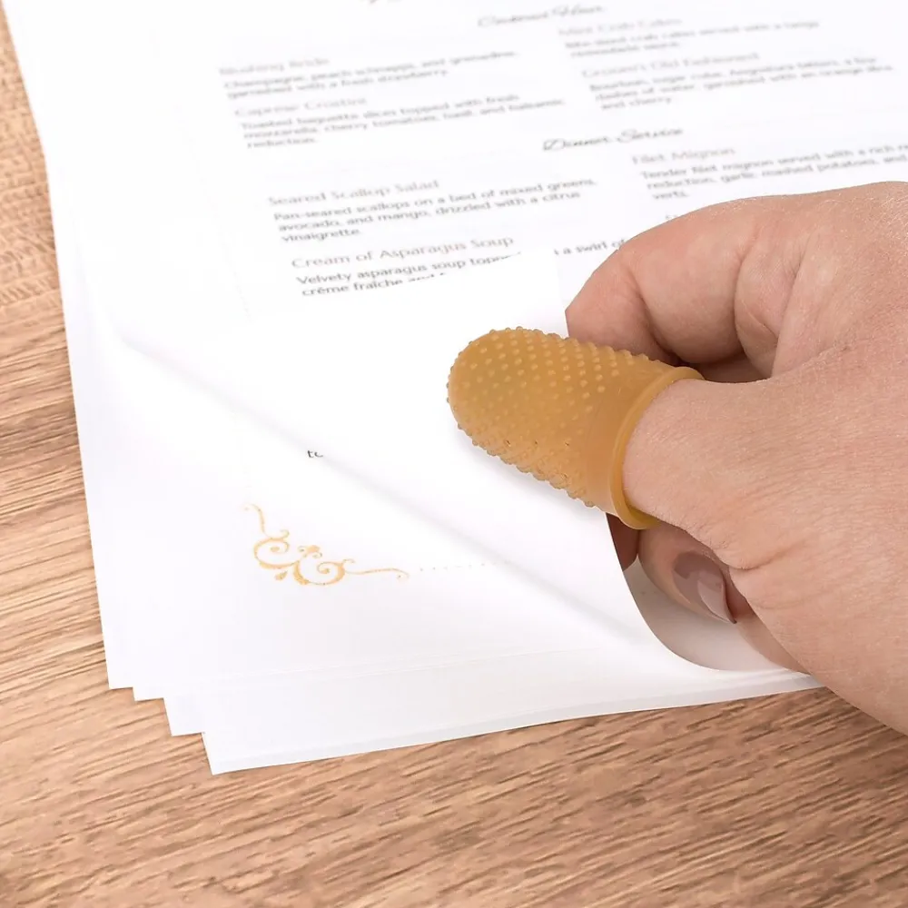 Sort paperwork and count cash accurately with these amber finger tips. To provide a secure, durable grip, these rubber finger tips have a flexible nubbed surface and an extra-thick tip. These Swingline finger tips come in box of 12, ideal for use in small offices.