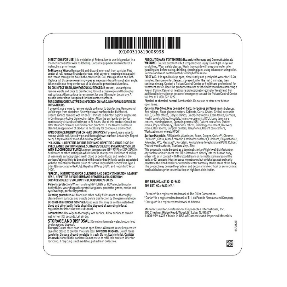 The PDI Sani-24 germicidal disposable wipes give you the power with around-the-clock protection. The wipes are an EPA-registered disinfectant with the ability to control HAI-causing microorganisms with continuously active disinfection (CAD). The CAD technology provides an antimicrobial shield that protects against ESKAPE pathogens, which are responsible for over 40% of HAIs in the health care environment for up to 24 hours. Protect your patients, staff, and facility with confidence and control, even between disinfection protocols. Now effective against SARS-CoV-2, the virus that causes COVID-19.