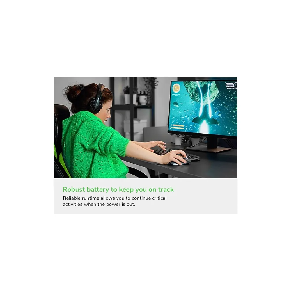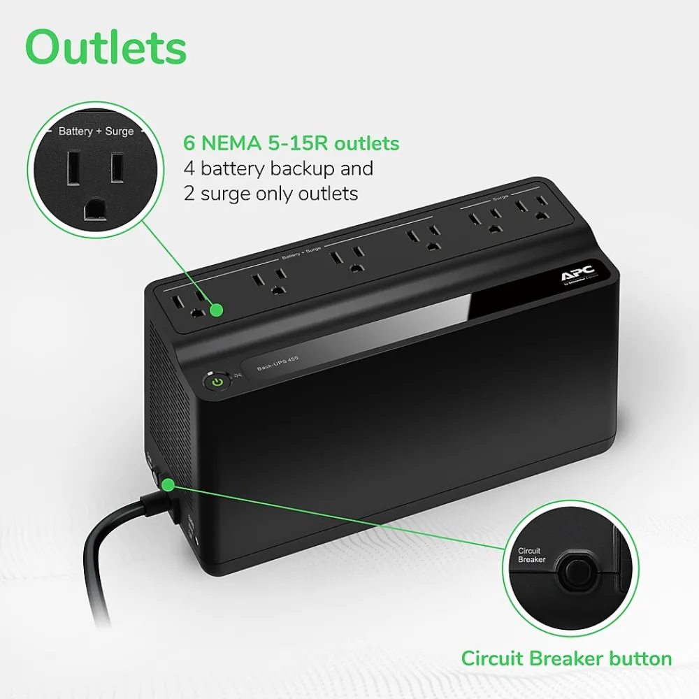 - Equipped with six outlets for seamless connectivity (four battery backup, and two surge only outlets)