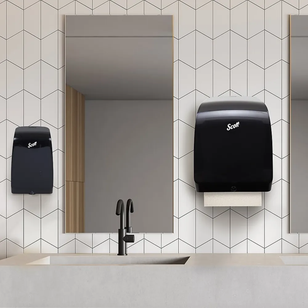 Scott Essential provides reliable balance of efficiency, performance and value. If you’re looking for high-capacity commercial paper towels compatible with most universal roll paper towel dispensers, the Scott Essential Hard Roll Paper Towels (natural color) are an excellent choice for your business. The roll has a core size of 1.5″ and is compatible with a variety of Kimberly-Clark Professional dispensers and many universal towel dispensers. Plus, these high-capacity towels measure 8 inches wide x 800 feet long; they are designed to reduce maintenance time, run-outs and complaints. These absorbent recycled paper towels are designed for efficient general-purpose cleaning and drying, so your employees and guests will use less, saving you money.