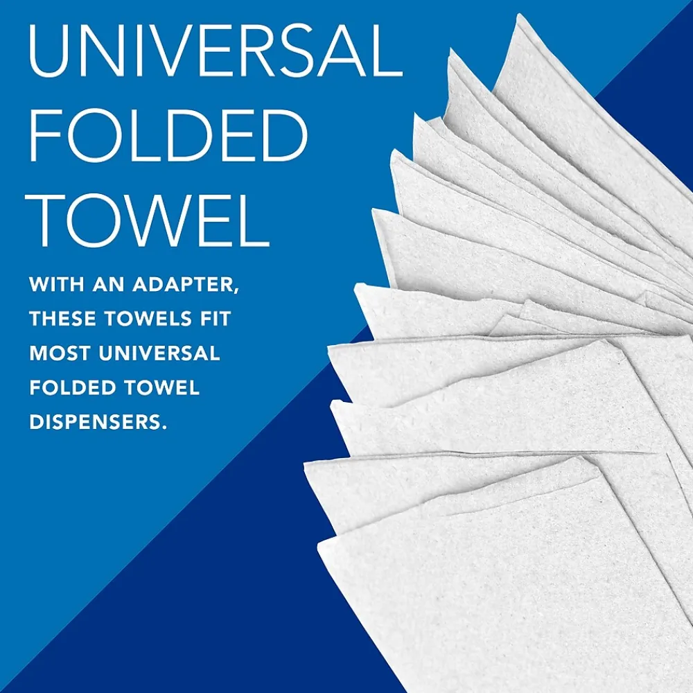 Keep these white paper towels in restrooms, kitchen areas, or near any shared sink. These towels feature Absorbency Pockets that soak up moisture quickly, and the material is soft for use on hands but strong enough to mop up spills. Designed to reduce waste, these multifold towels dispense one at a time, and they fit neatly into most universal dispensers. These Scott Scottfold paper towels are packaged as 175 towels in a pack with 25 packs per case, so you can supply multiple areas or stock up for future use.