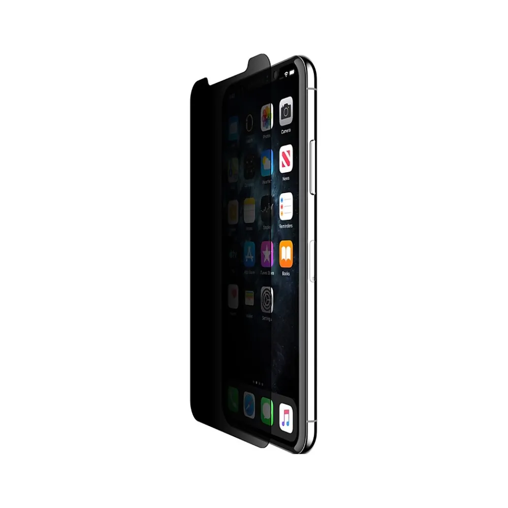 Protect your iPhone 11 Pro Max/XS phone screen and your privacy by using this Belkin SCREENFORCE screen protector. An ultrathin precision-cut screen protector means you get a flawless touch screen experience while keeping what’s on the screen private from prying eyes. Your emails, texts, and other sensitive content stay private, even in public spaces, such as a train or crowded event. With an outstanding scratch protection, your iPhone 11 Pro Max/XS maintains that fresh-out-of-the-box look. What’s more, it has been engineered with fingerprint and oil resistance to help keep the screen feeling clean and looking clear.
