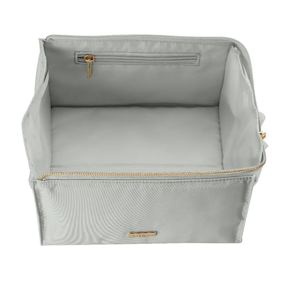 - Bag unzips and folds to a flat tray so all your essentials are easily visible and accessible