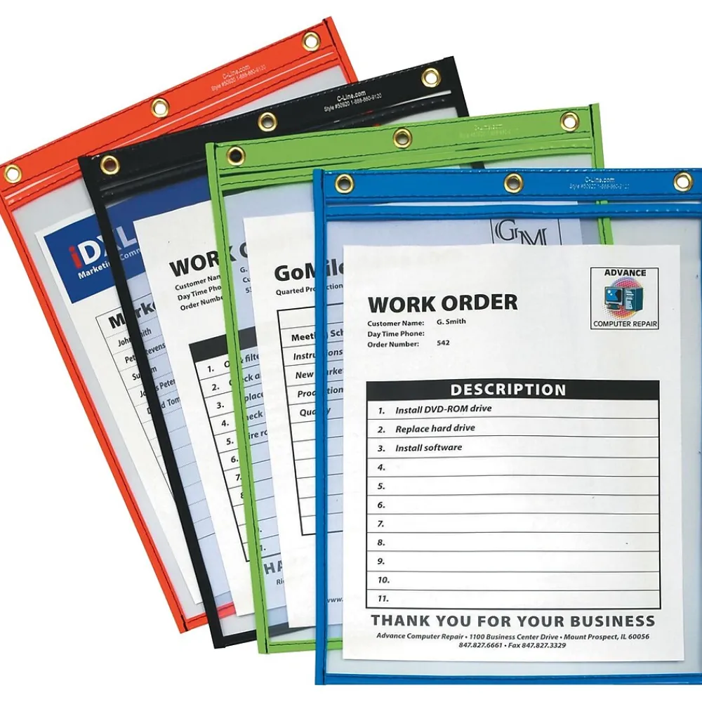 Heavy-duty vinyl construction allows for easy visibility of documents and stitched seams ensure long-lasting utility.