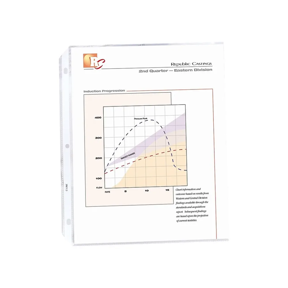 Prepare documents for presentations or meetings with these C-Line standard-weight sheet protectors. The top-load design makes it easy to add sheets without removing each protector from the binder, and acid-free construction prevents ink and toner from lifting off the page. These C-Line standard-weight sheet protectors feature three-hole-punch edges, so there’s no need to add holes to your documents before filing them away.