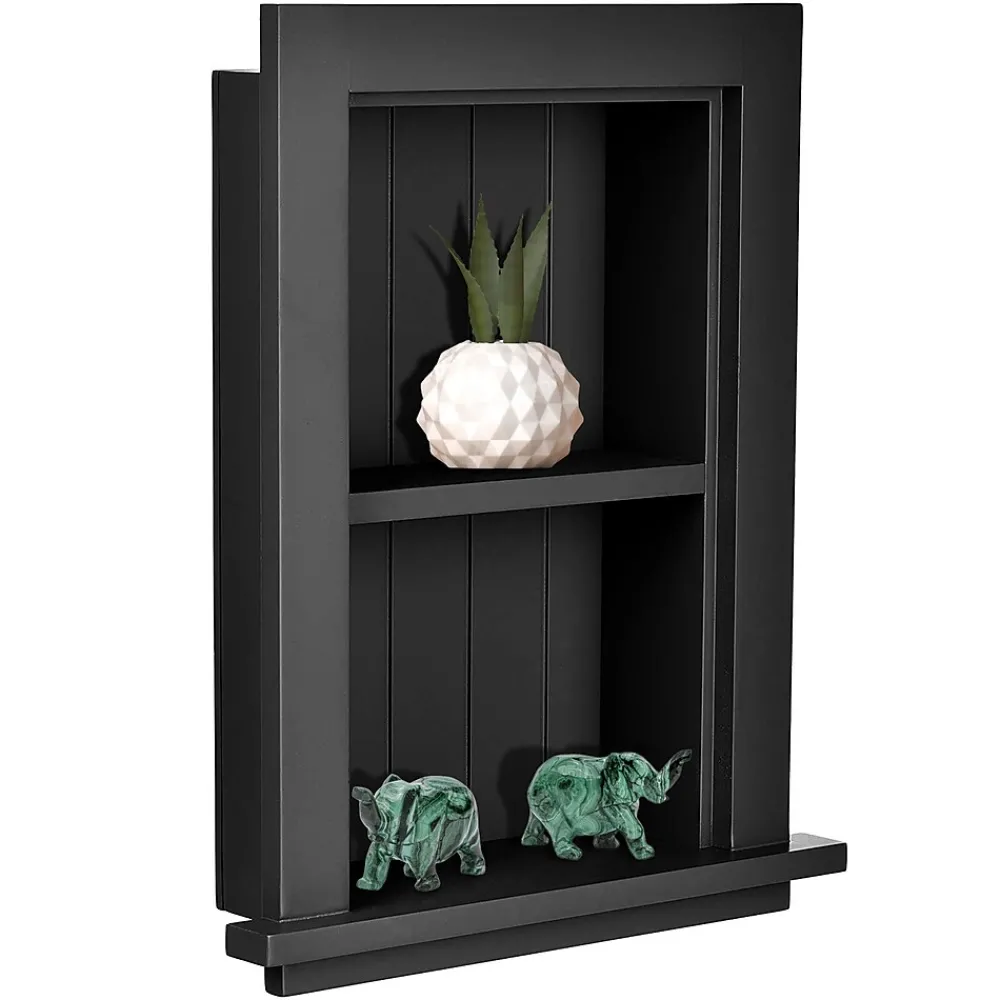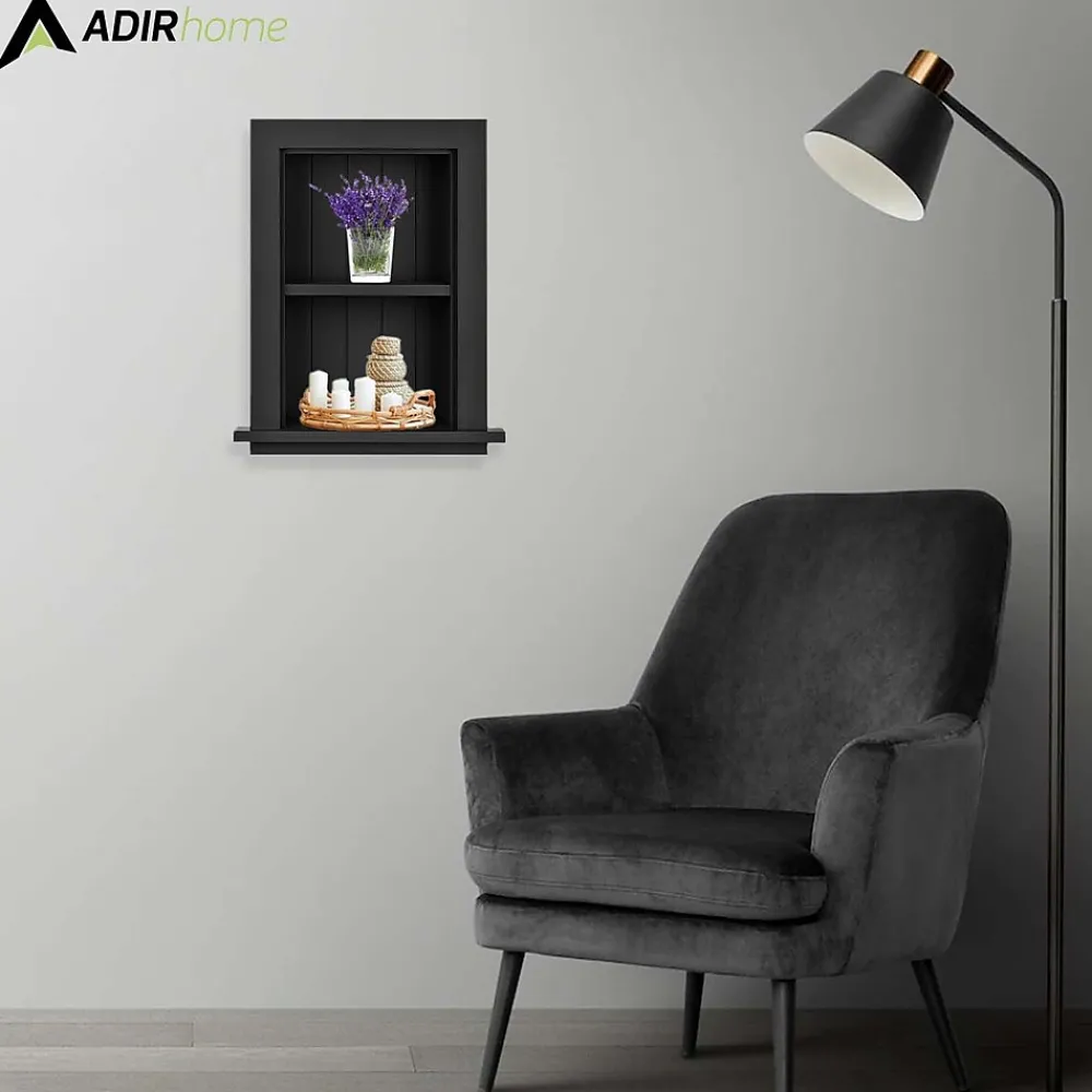 Fully assembled, beautifully finished AdirHome 12.753 in. W Wood Bathroom Recessed Wall Shelf in Black units in solid hardwood serve many uses for imaginative homeowners looking to add both style and utility to rooms anywhere in the home or office. In bathrooms, use them to hold often-used personal-care products such tissues, lotions and cotton swabs and to provide courtesy items for house guests. Elsewhere in your home or office they are perfect to showcase decorative accents such as photos, awards, artwork and other accents in dens, entryways or wherever blank walls cry for a focal point. Easy to mount onto any wall with installation instructions and hardware, the AdirHome 12.75 in. W Wood Bathroom Recessed Wall Shelf is sized to fit into existing or easily cut new openings. Set of 2.
