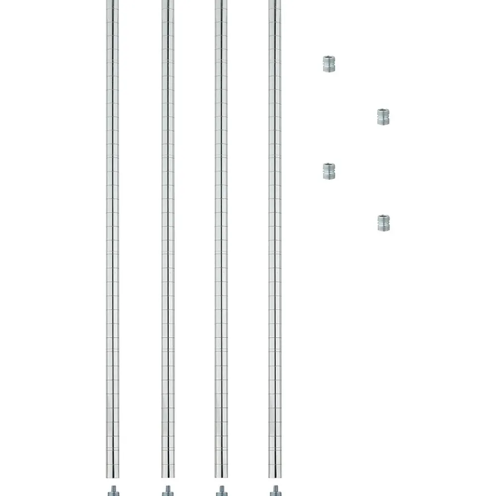 Alera Industrial wire shelving post in silver color comes with cap. Shelving post includes screw insert, feet leveler and post connector.