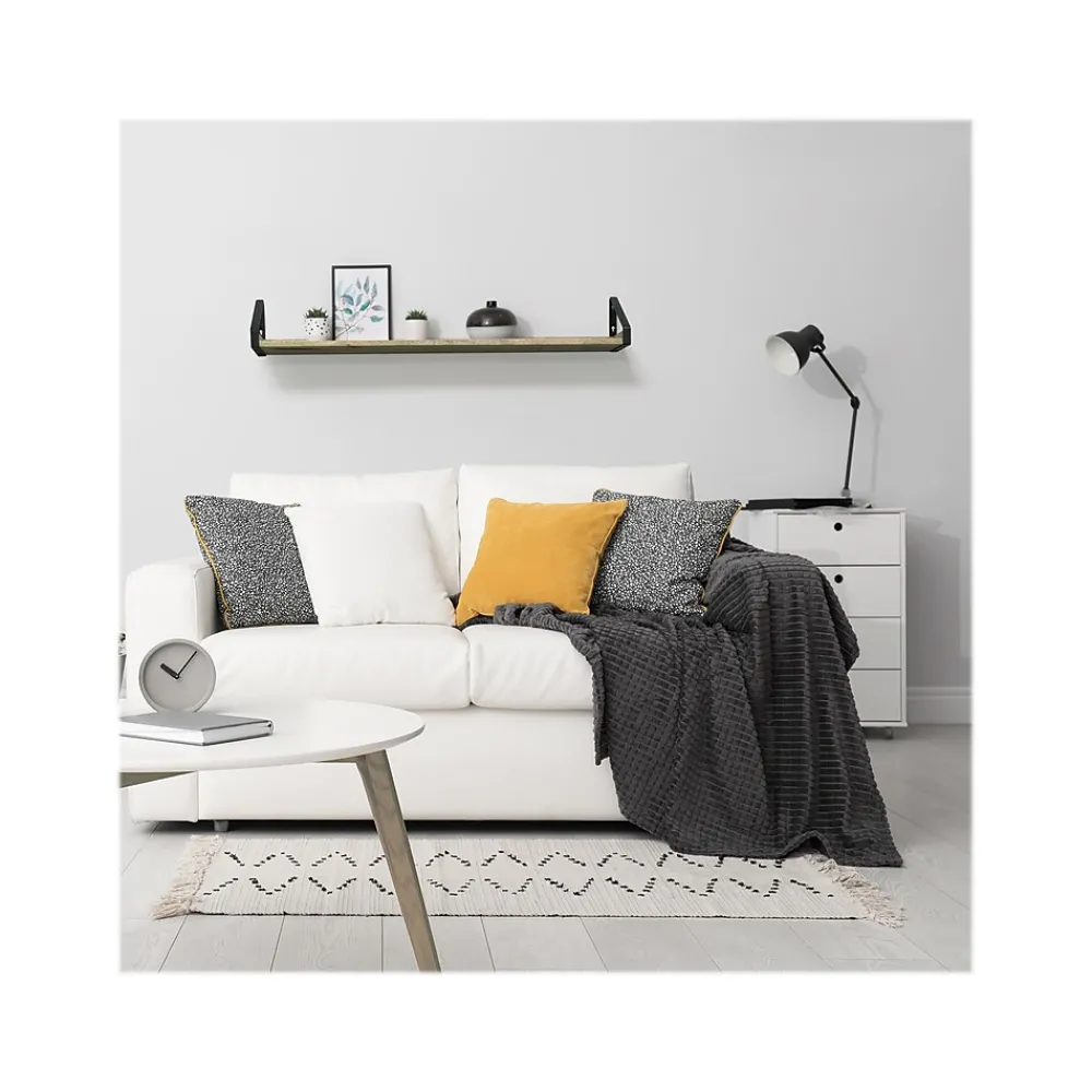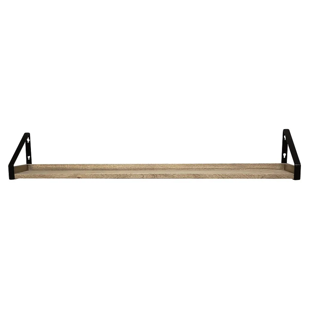 The Eden Grove Shelving real-wood ledge with metal brackets has a smooth surface with rounded edges and an even tapered style. The sturdy metal brackets enhance the ledge and are simple to install. The finish of the real wood varies in color due to the nature of the natural material. The look of reclaimed wood is all part of the trendy accent this ledge will make to your home or office.