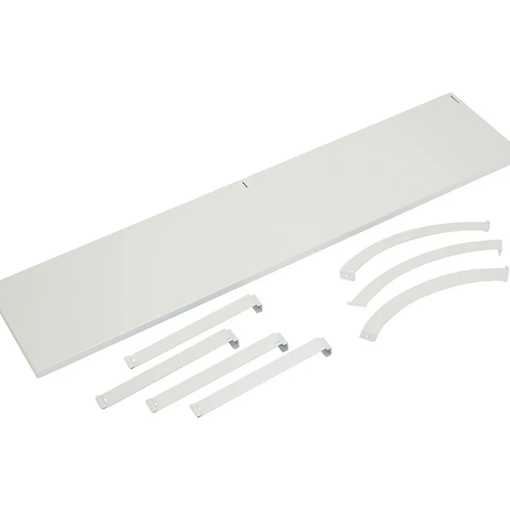 This steel hanging shelf makes the most of vertical surfaces, and conveniently hangs over the top of the panel. Finish color is Light Gray.