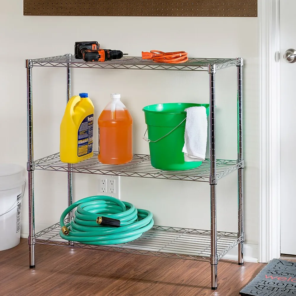You were looking for new closet storage ideas when your sweaters requested a sit down with you. Not only did they ask you to stop putting them on hangers, but they suggested you straighten up your shoe collection, too. That’s when you decided it was time to restore order to your closet with this 3-Tier Adjustable Steel Shelving Unit. Its commercial-grade durability is tough to tame any wardrobe gone wild, while its steel grated shelves allow your garments plenty of breathing room. Easy to assemble and versatile, this adjustable shelving unit also straightens up messes in your basement or garage.