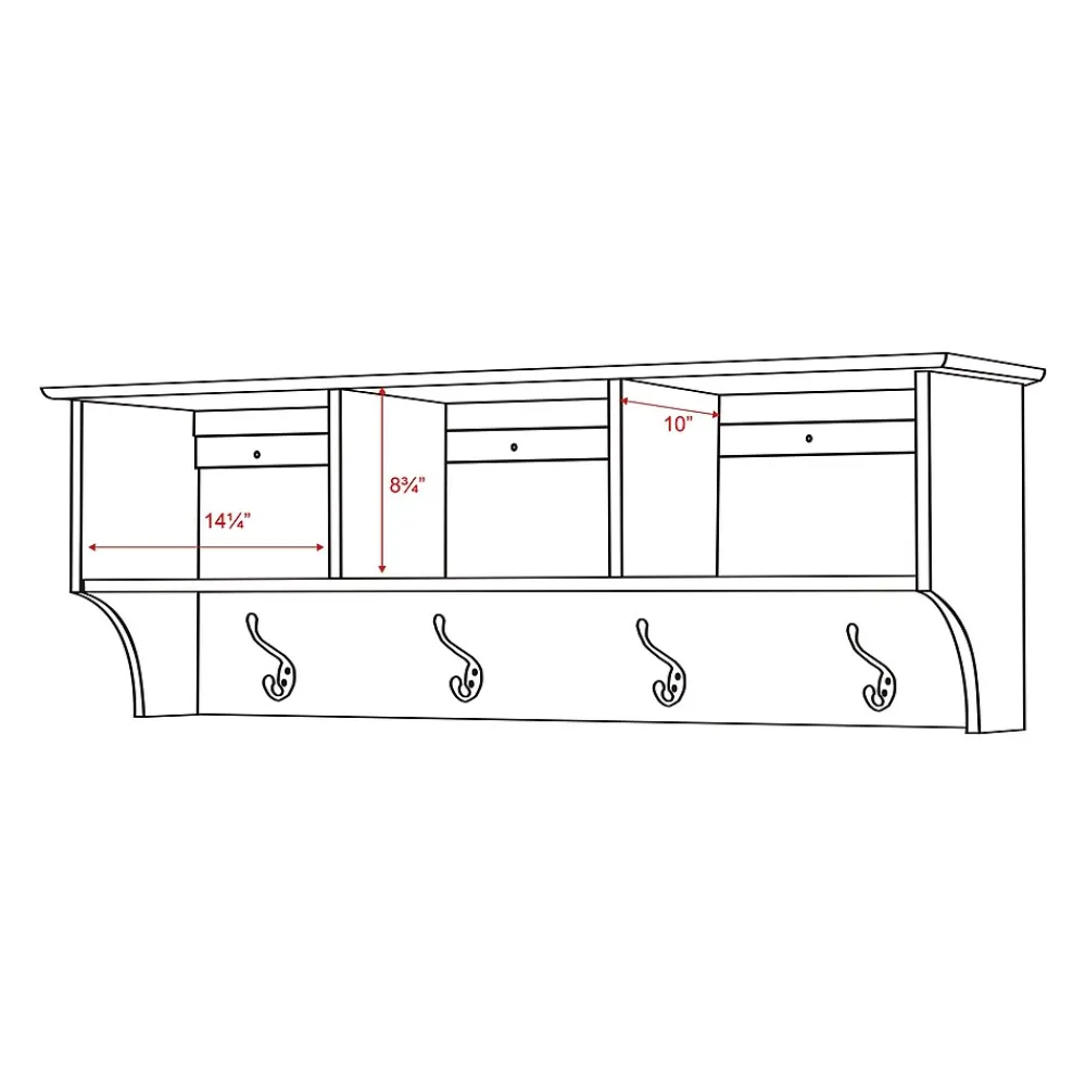 Prepac™ Entryway cubbie shelf in white finish helps keep your gloves, hats, coats and jackets organized. Shelf easily mounts to wall with its innovative hanging rail system providing a sleek and traditional look.