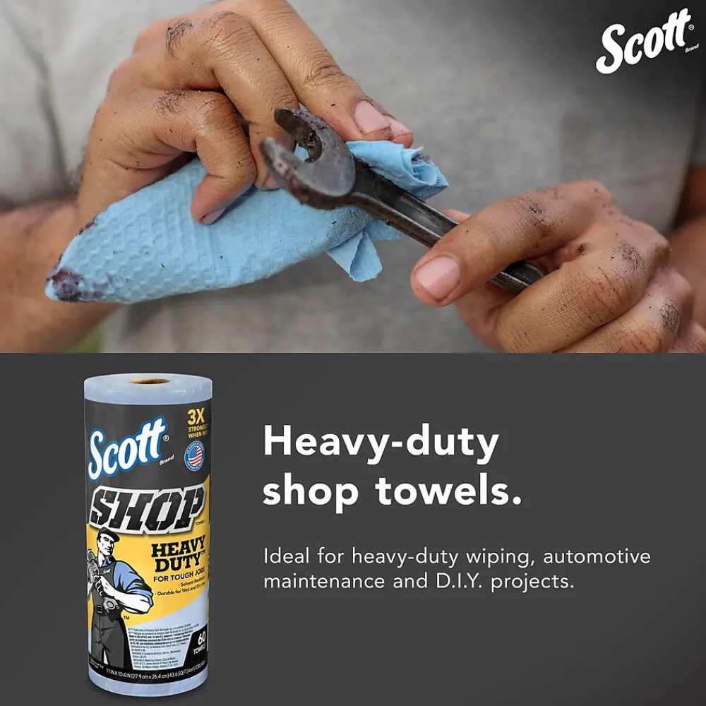 - 60 Towels/Roll; 12 Rolls of Scott® Shop Towels Heavy Duty™/Case; 720 Towels/Case; Blue Shop Towels for Solvents and Heavy Duty Jobs; 10.4″x11″ sheets