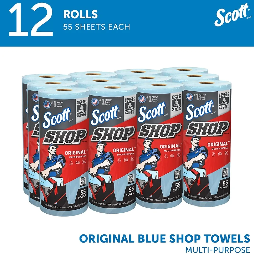- 55 Towels/Roll; 12 Rolls of Scott® Shop Towels Original™/Case; 660 Towels/Case; Original Blue Shop Towels; 9.4″x11″ sheets