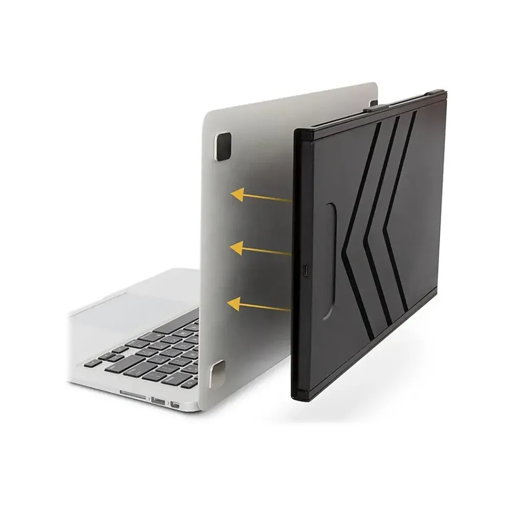 Make your laptop dual-screen with the SideTrak ultra-portable monitor. This 12.5″ Full HD monitor attaches to the back of your laptop with semi-permanent metal plates so you can effortlessly work anywhere with two screens.