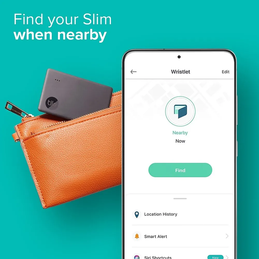 No more last-minute searching for your wallet or passport. The credit card-sized Slim discreetly slides into wallets and luggage tags for easy tracking. Use it with the free Tile App to find your items — whether nearby, or left at the office.