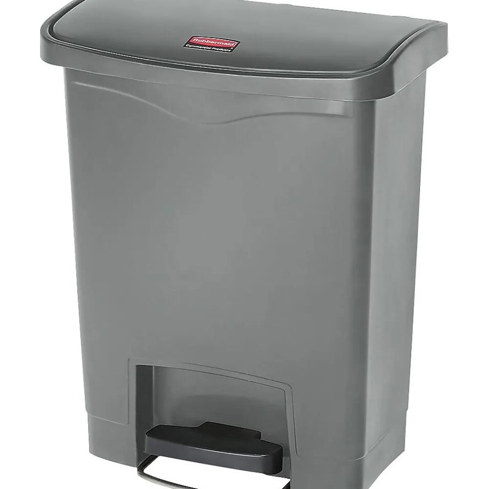 Resin step-on container is perfect for hands-free garbage disposal indoors and holds up to 8 gallons
