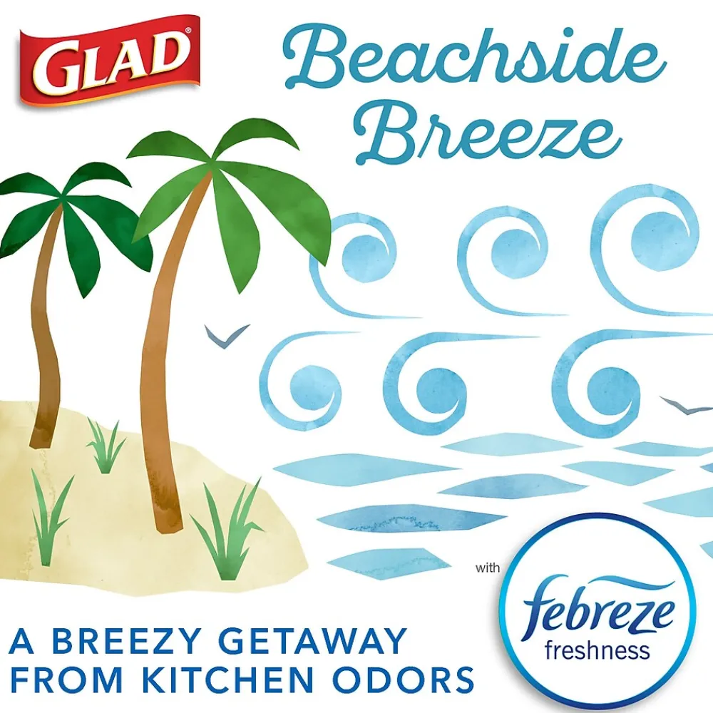 - LONG LASTING ODOR CONTROL: Be the champion of trash with these durable bags that keep your kitchen free of noxious trash odors with a steady release of Beachside Breeze with Febreze Freshness