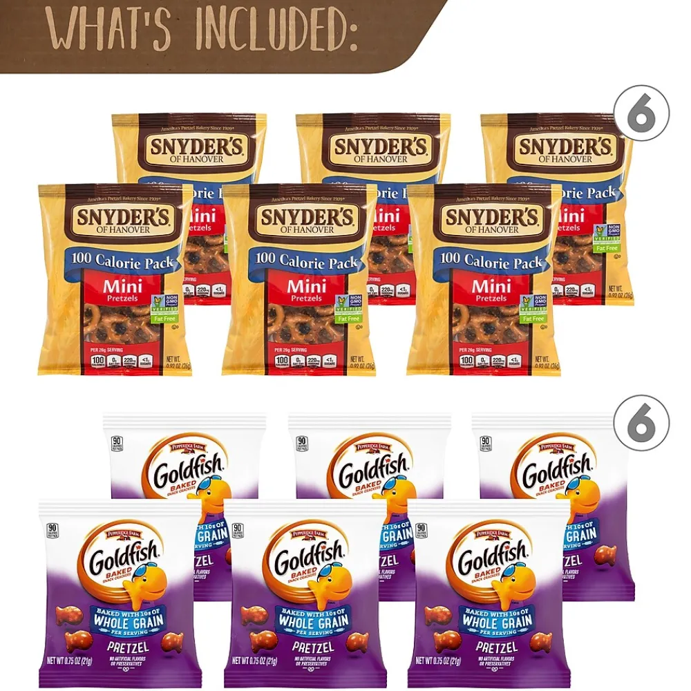 - Includes brands like Dot’s, Snyders, Pepperidge Farms, Combos, Fit Joy and Pop Daddy for a total of 38 individual bags of pretzel goodness