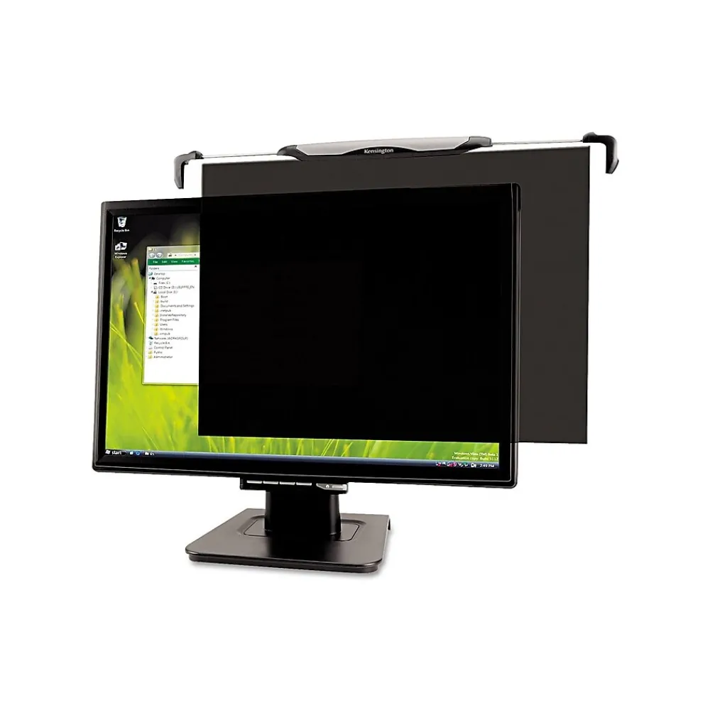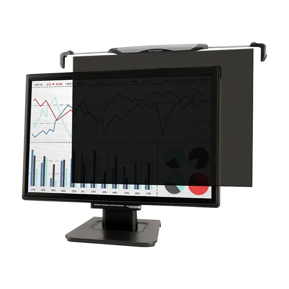 Conceal client and proprietary information from people passing by with this Snap2 20- to 22-inch widescreen monitor privacy screen. Featuring a spring-loaded mount, this filter offers easy installation and enhances visual security by blocking the display from outside a narrow viewing angle. This Kensington Snap2 privacy screen has a textured, tinted surface that helps reduce glare and enhances image contrast.