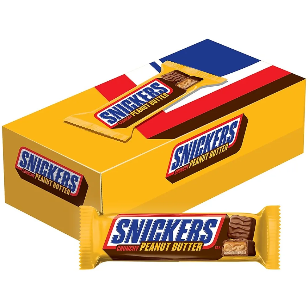 - Bulk box of full size SNICKERS Peanut Butter Squared Chocolate Bars