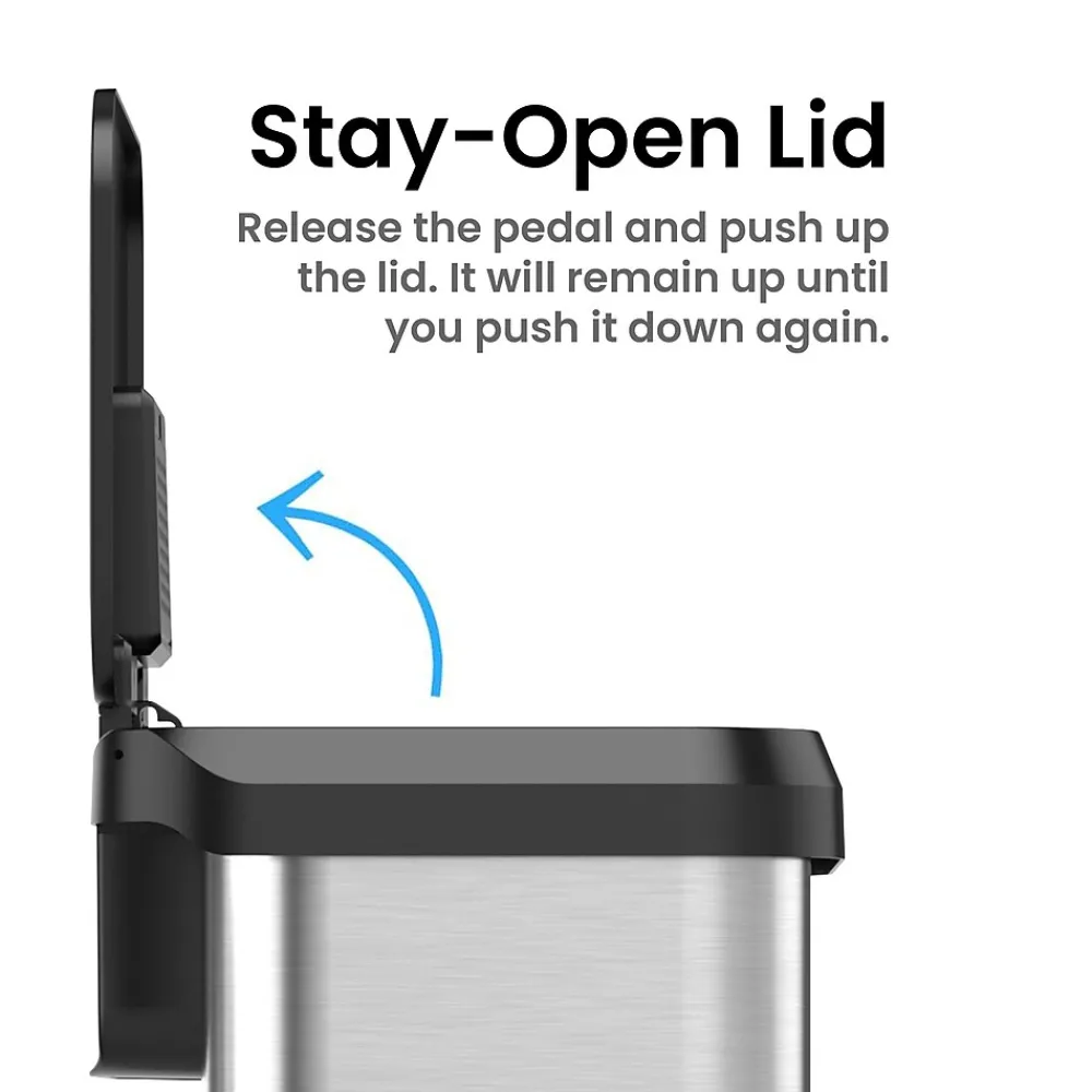- Step trash can ensures clean and litter-free space and provides hands-free operation