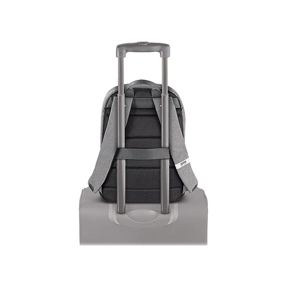 Solo New York is tackling environmental issues from all angles, in style. Designed in urban-cool gray, the Cycle collection brings a sustainable angle to sleek design, making green choices accessible to the masses. Each item in this collection is built with city-functionality in mind and offers an uncompromising style. Made from recycled pet bottles, this backpack has a padded compartment for 11- 15.6 inch laptops, a front zipper pocket with key clips and slide over most telescoping luggage handles.