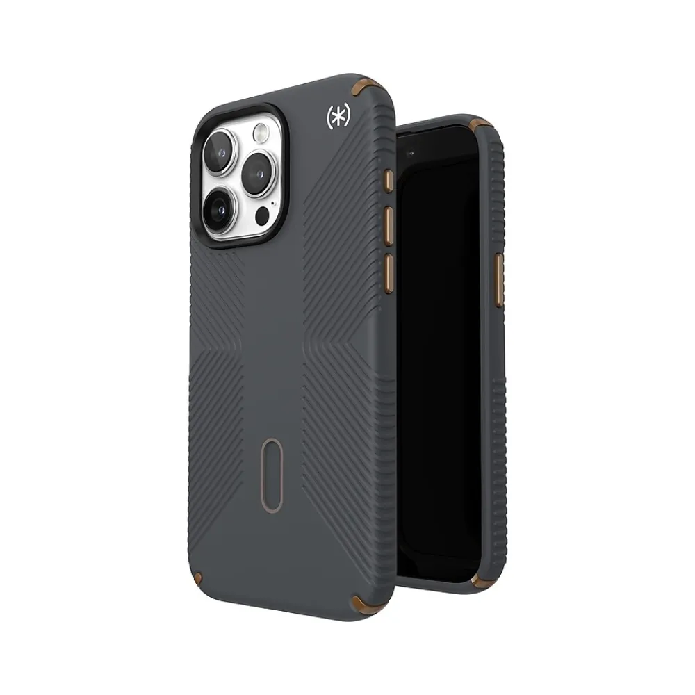 The Speck Presidio 2 Grip MagSafe with ClickLock case is 20% slimmer with no-slip inverted grips, provides 13′ drop protection, and is made from 50% recycled plastics. The case features ClickLock no-slip interlock technology, a MagSafe enhancer, and Microban antimicrobial product protection. Built specifically to work with all Apple MagSafe accessories.