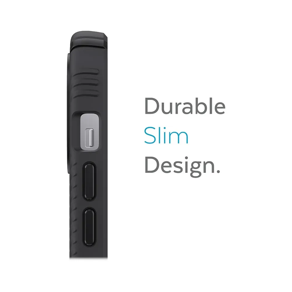 Speck Presidio2 Grip is a super protective and pocket-friendly case that is now 20% slimmer, with a soft-touch finish for ultimate comfort plus innovative no-slip inverted grips. The inverted grip is designed to provide longevity, durability, and a strong grip for more confidence when texting, talking, or taking photos. Not only is this case stylish, but also the Presidio2 Armor Cloud technology makes it tough for rough moments. The perimeter of the case is lined with air capsules. On impact, they compress and suspend your phone on a cushion of air, just like an airbag. Tested in the real world to withstand drops of up to 13′, so you’ll be confident knowing your phone will be protected. Now even slimmer, this durable and sleek case is optimized for easy wireless charging with MagSafe and Qi for a seamless charge with all your accessories. For the ease of use you can feel, experience a precise fit tailor-made for your device with the addition of enhanced ultra-responsive buttons for smoother clicks and volume control. It also features an antimicrobial treatment from Microban that delivers a 99% reduction in stain- and odor-causing bacteria on the case, creating a cleaner surface. If that wasn’t enough, the case also features a raised bezel. This added edge helps protect your screen from scratching and shattering in case your phone falls and lands facedown.