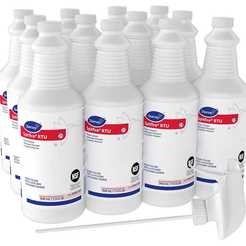 Make cleaning quick and simple by using this 32-ounce all-purpose power cleaner. The bottle features an adjustable spray nozzle and a no-rinse formula for convenient application, while the light scent makes it pleasant to use. This Diversey Spitfire all-purpose power cleaner comes in a pack of 12 bottles, so keeping it in stock is easy.