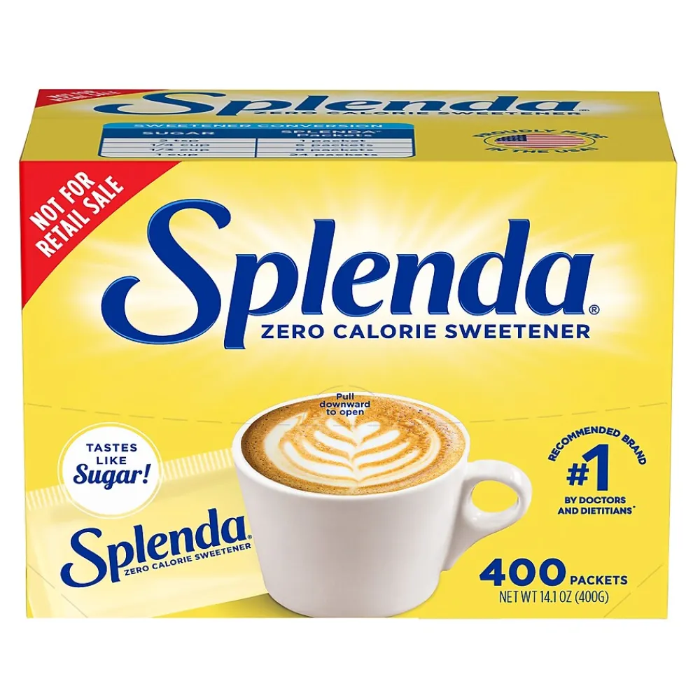 Offer an alternative sweetener for coffee or tea with these Splenda sweetener packets. Each packet replaces two teaspoons of sugar and contains no calories, making it an excellent choice for people who are counting calories and those who need to regulate sugar intake. Stock your break room with boxes of 400 Splenda sweetener packets so there’s always some available for those who need it.