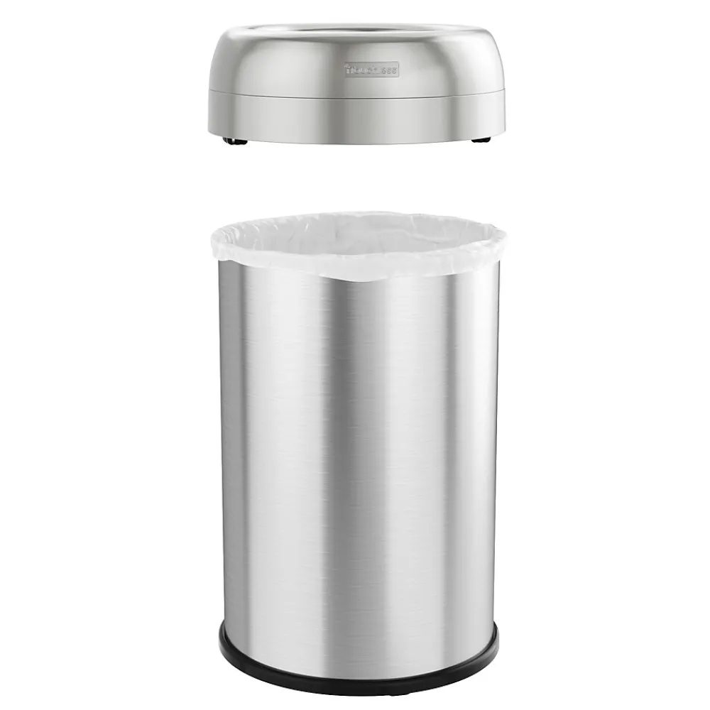 Featuring two powerful deodorizers, the iTouchless round 13 Gal 49 L stainless steel trash can with an open top is the easiest way to dispose of trash quickly, yet enjoy fresh and clean smelling surroundings. Whether you need a waste receptacle for residential for commercial use, this large capacity, stainless steel trash can is the perfect solution for quick, on-the-go disposals. The dual-deodorizers ensure that trash odors stay inside the can.