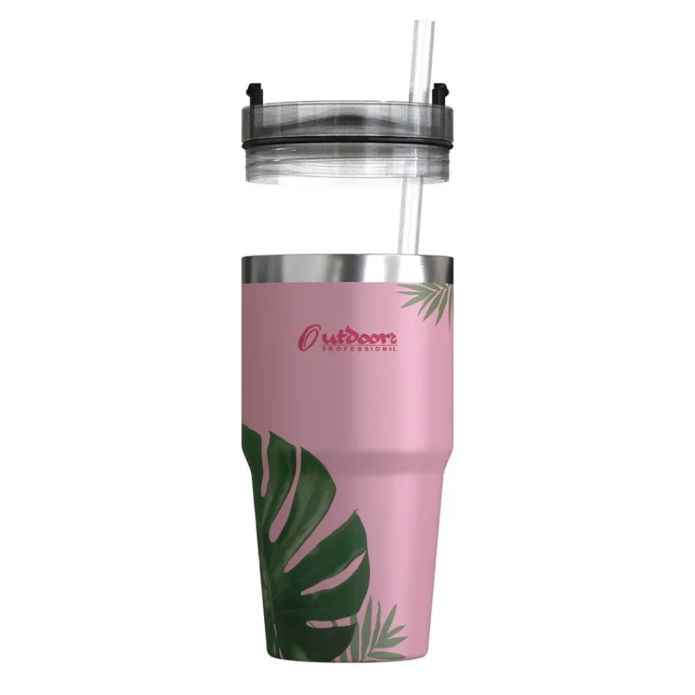 The Outdoors Professional 20-Oz. Tropical Pink Tumbler’s double-walled, vacuum-insulated technology will keep iced drinks cold for up to 30 hours, no-ice drinks chilled up to 8 hours, and hot drinks hot for up to 4 hours! No more settling for lukewarm sips or diluted flavors! If you’re on the go, this tumbler is built to fit any standard cup-holder. These tumblers are lightweight and durable. Crafted with stainless steel that is 100% BPA-free and nontoxic, this tumbler is built to withstand the rigors of everyday use, ensuring its durability for years to come. This tumbler features a screw-on splashproof straw lid to avoid spills and leaks. It’s not only lightweight and easy to carry but super easy to clean. Hand-washing is a breeze as the wide mouth allows for effortless access to every nook and cranny. It’s also dishwasher-friendly: simply toss it in, let the dishwasher work its magic, and have a sparkling clean tumbler!