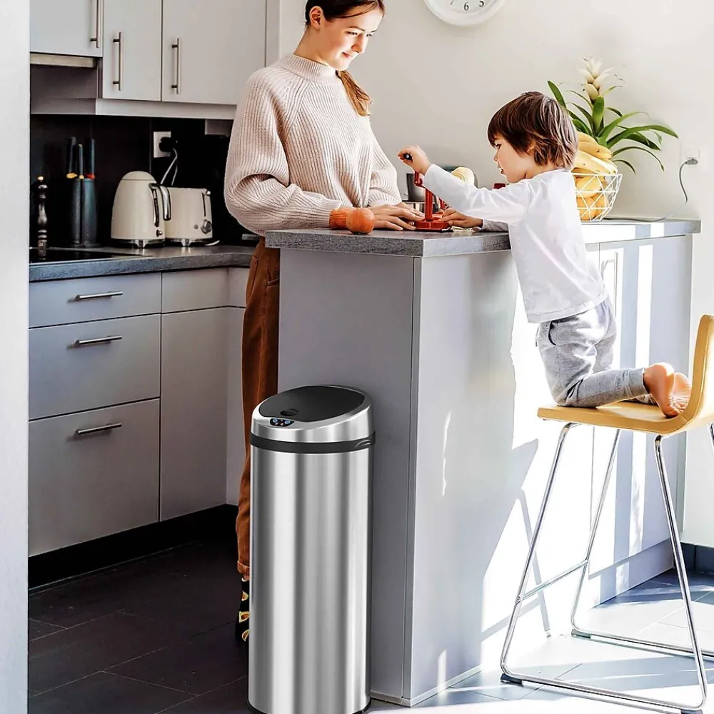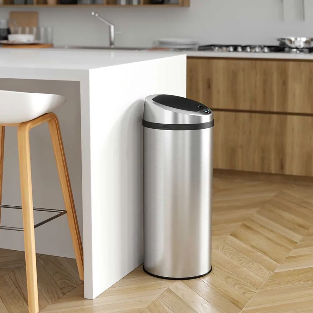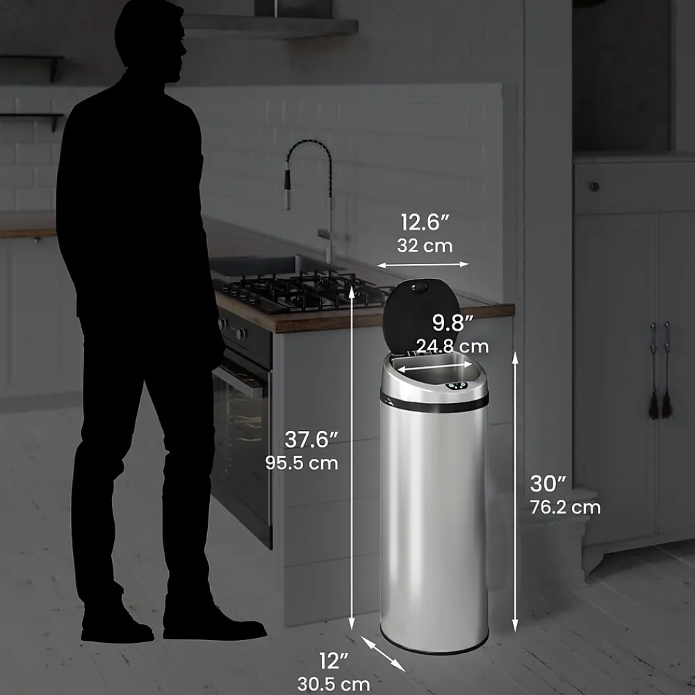 - Touchless, sensor-activated lid