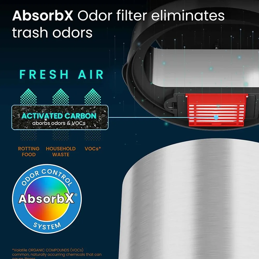 - Stop Trash Odors + Improve Air Quality – 1 AbsorbX Natural Activated Carbon Odor Filter is included to absorb and neutralize trash odors, for a healthier and fresh and clean smelling home.