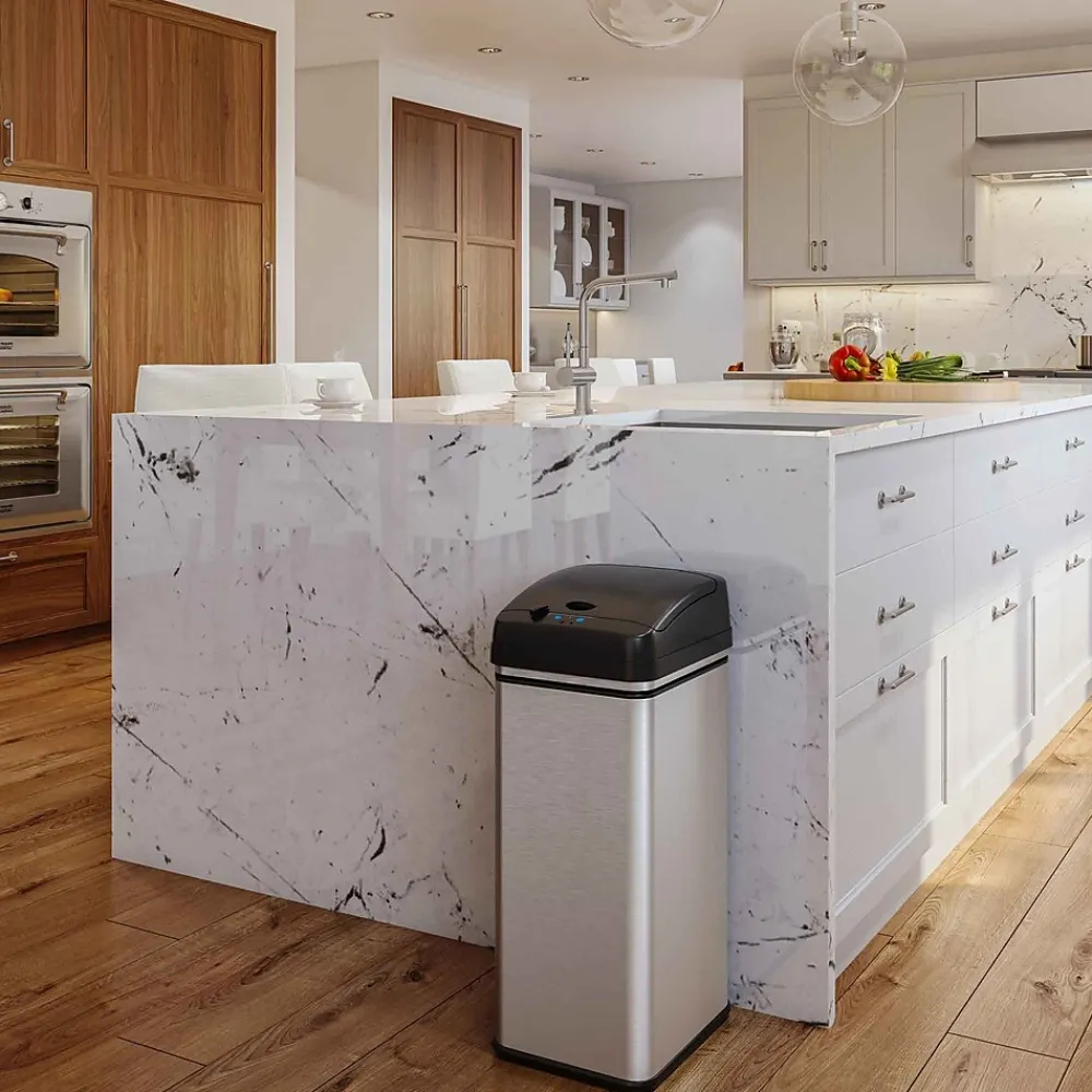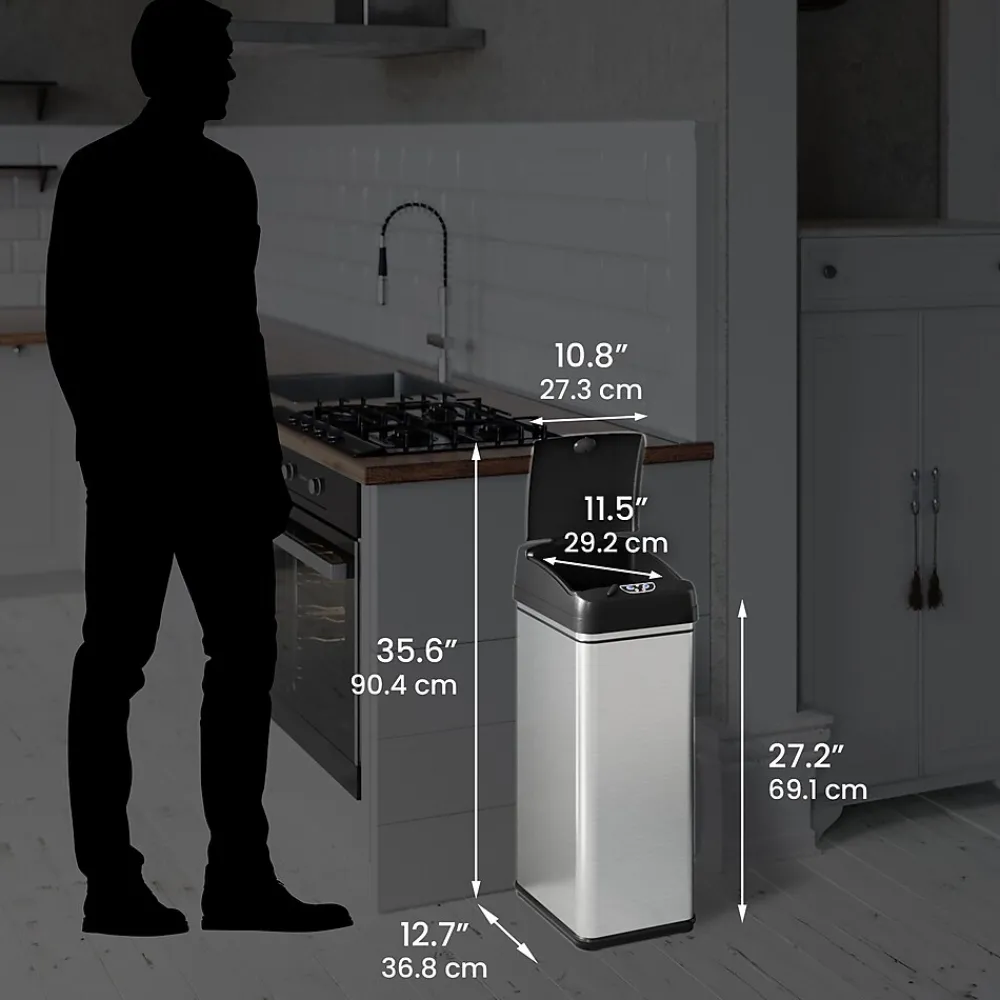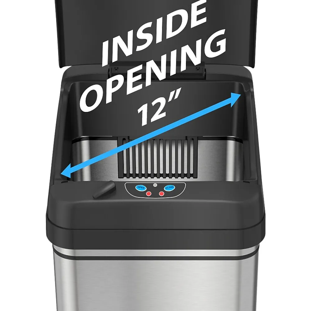 - Touchless, sensor-activated lid