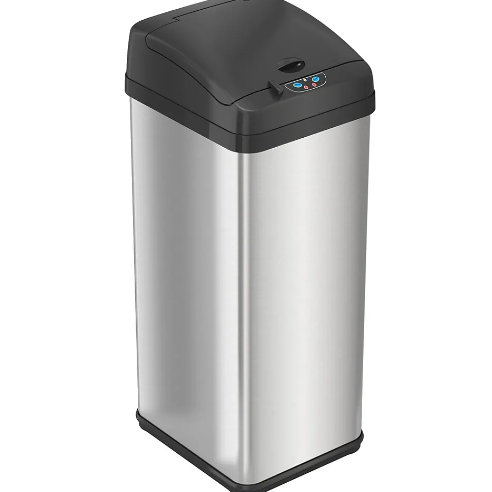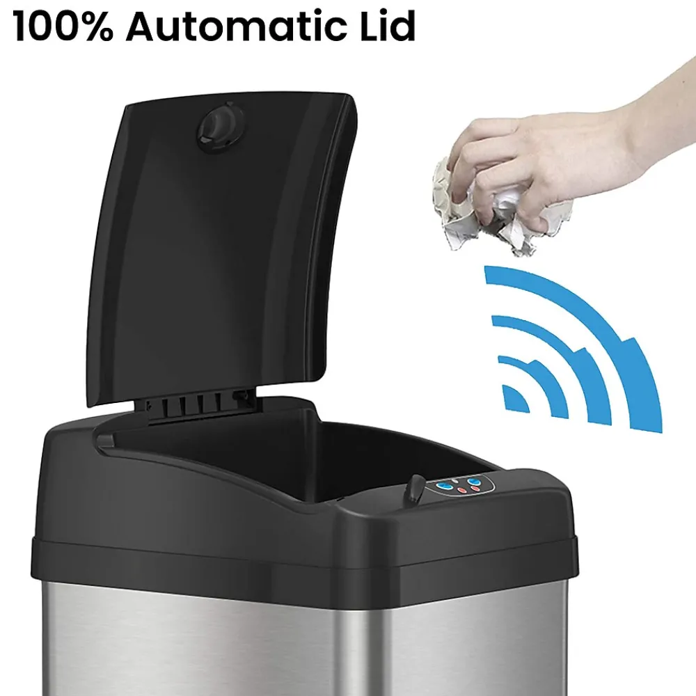 - Touchless, sensor-activated lid
