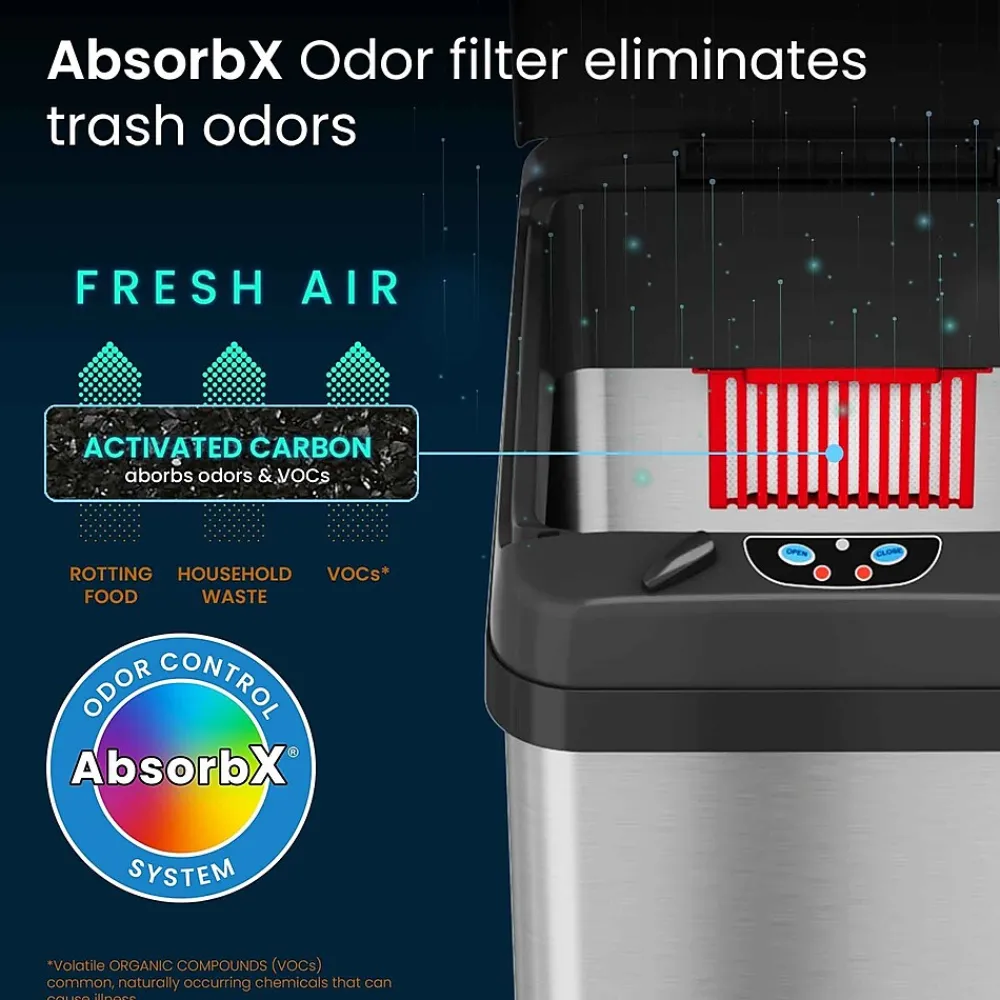 - Stop Trash Odors + Improve Air Quality – 1 AbsorbX Natural Activated Carbon Odor Filter is included to absorb and neutralize trash odors, for a healthier and fresh and clean smelling home.