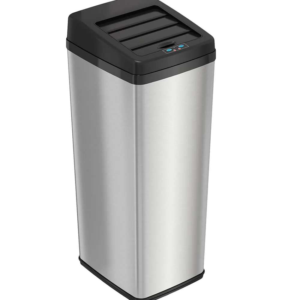 - Sensor-activated, automatic lid. High-quality ABS plastic. Powered by four D size batteries (not included) or AC Adapter (sold separately).