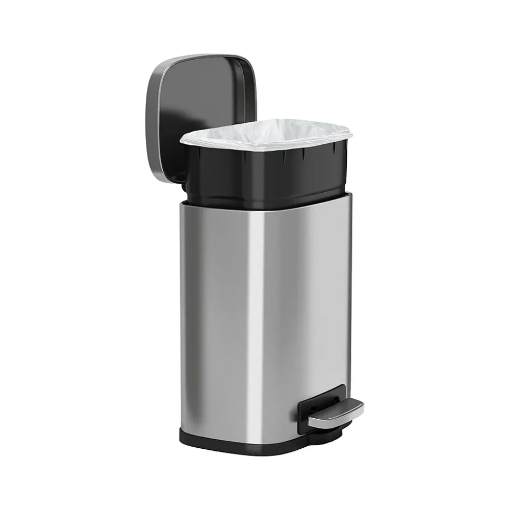 - Step trash can ensures clean and litter-free space and provides hands-free operation