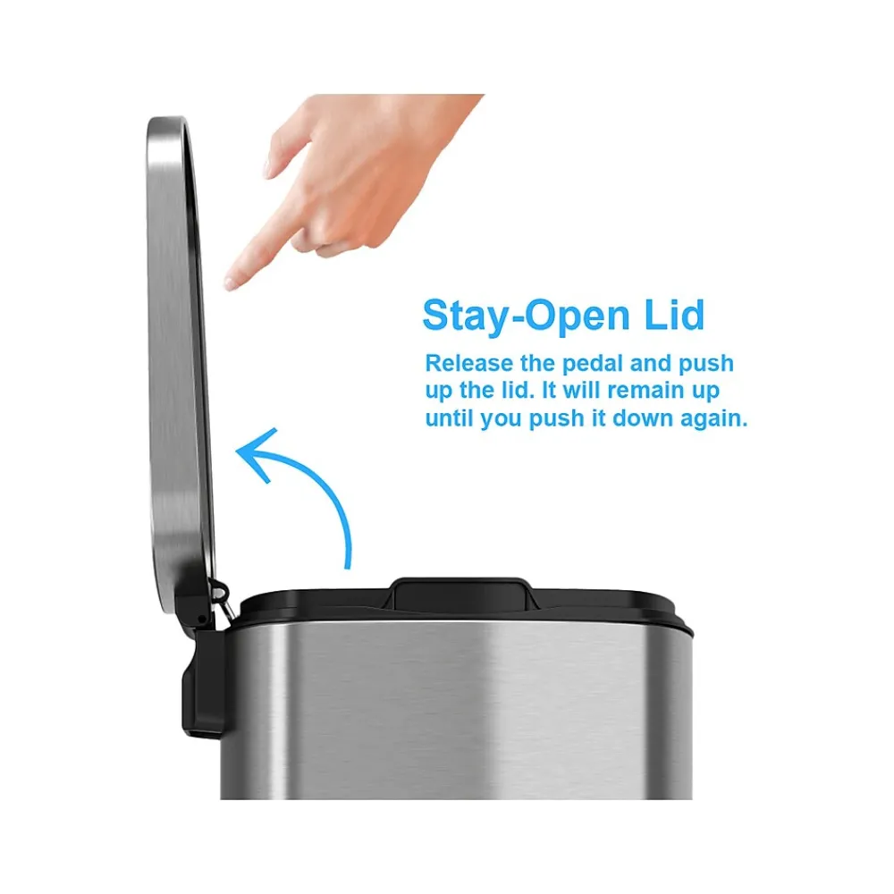 - Step trash can ensures clean, litter-free space and provides hands-free operation