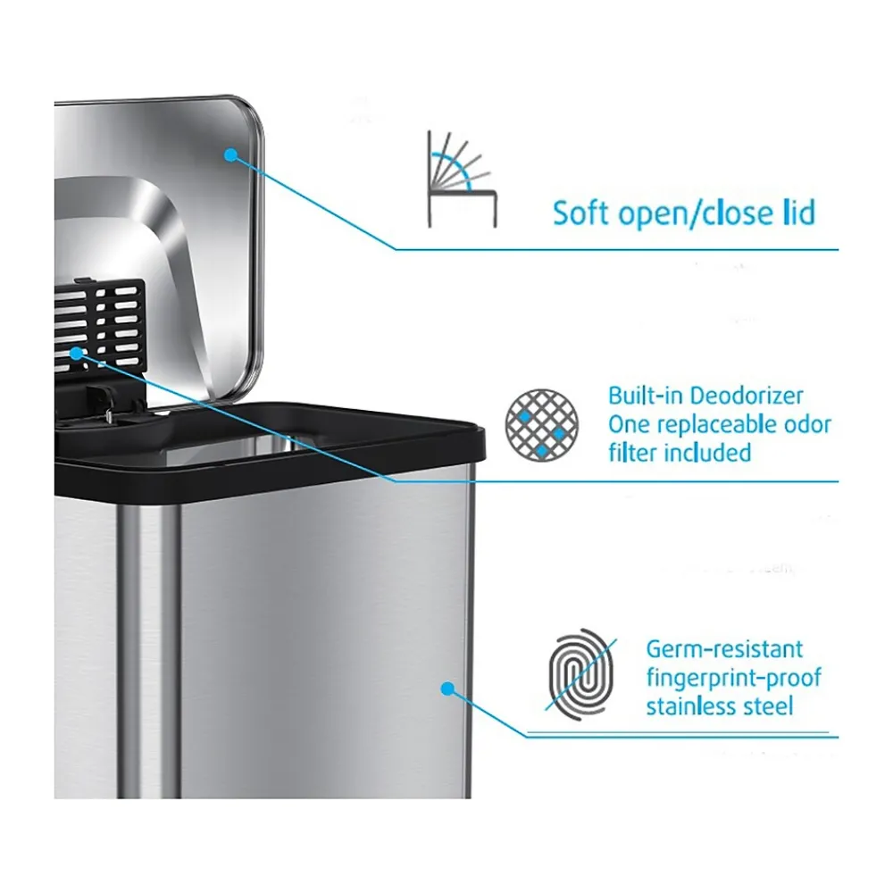 - Step trash can with AirStep technology ensures smooth and easy pedal operation