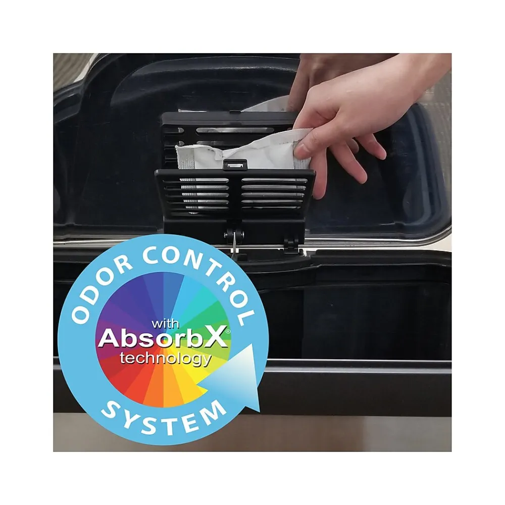 - Includes a replaceable AbsorbX odor filter that keeps surrounding area smelling fresh and clean