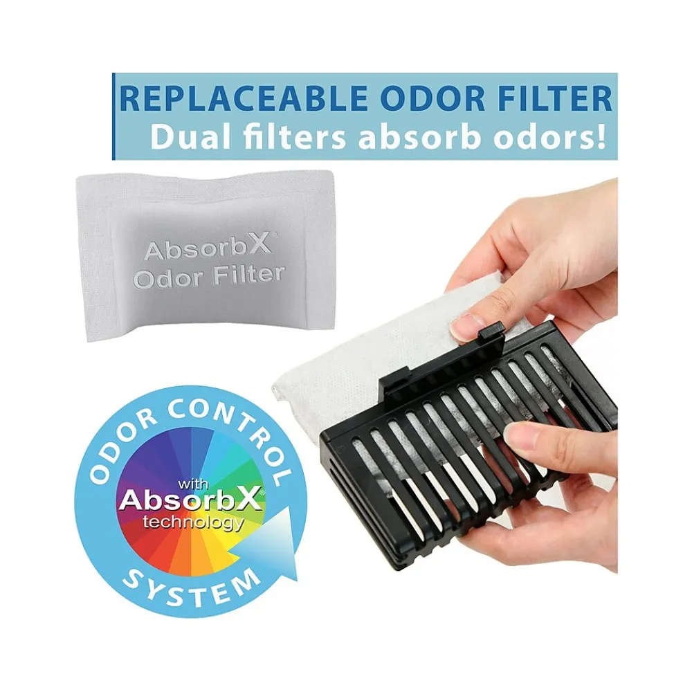 - Dual AbsorbX odor filters keep the surrounding area smelling fresh and clean