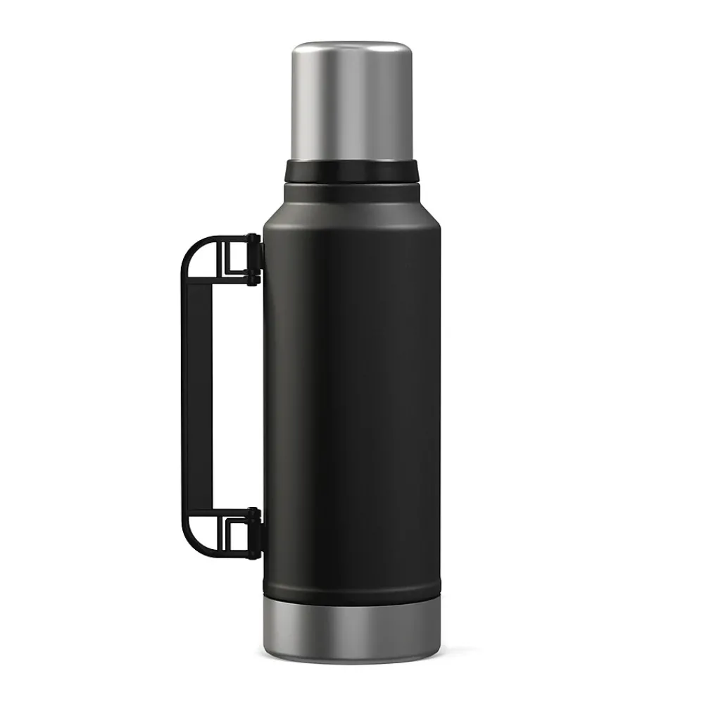 The Outdoors Professional Black 33.8-Oz. Termo Classic Vacuum Bottle with Carry Handle is made with superior insulation that keeps liquids (soup, coffee, tea) hot for up to 24 hours or cold drinks cool for up to 24 hours. Add ice to your favorite beverage and the Termo classic will keep it cold for up to 5 days. The rustproof stainless steel construction means it can work just as hard as you do without impacting its performance. This is an ideal bottle to throw in your truck, work bag, or travel with it. It’s made with BPA-free materials, keeping its contents safe to consume. This 1-L bottle features a leak-resistant lid, so you can put it in your backpack without worrying about any spills. The wide mouth opening helps with easy pouring into the lid that doubles as a cup. The collapsible handle makes it easy to transport when you’re on the go.
