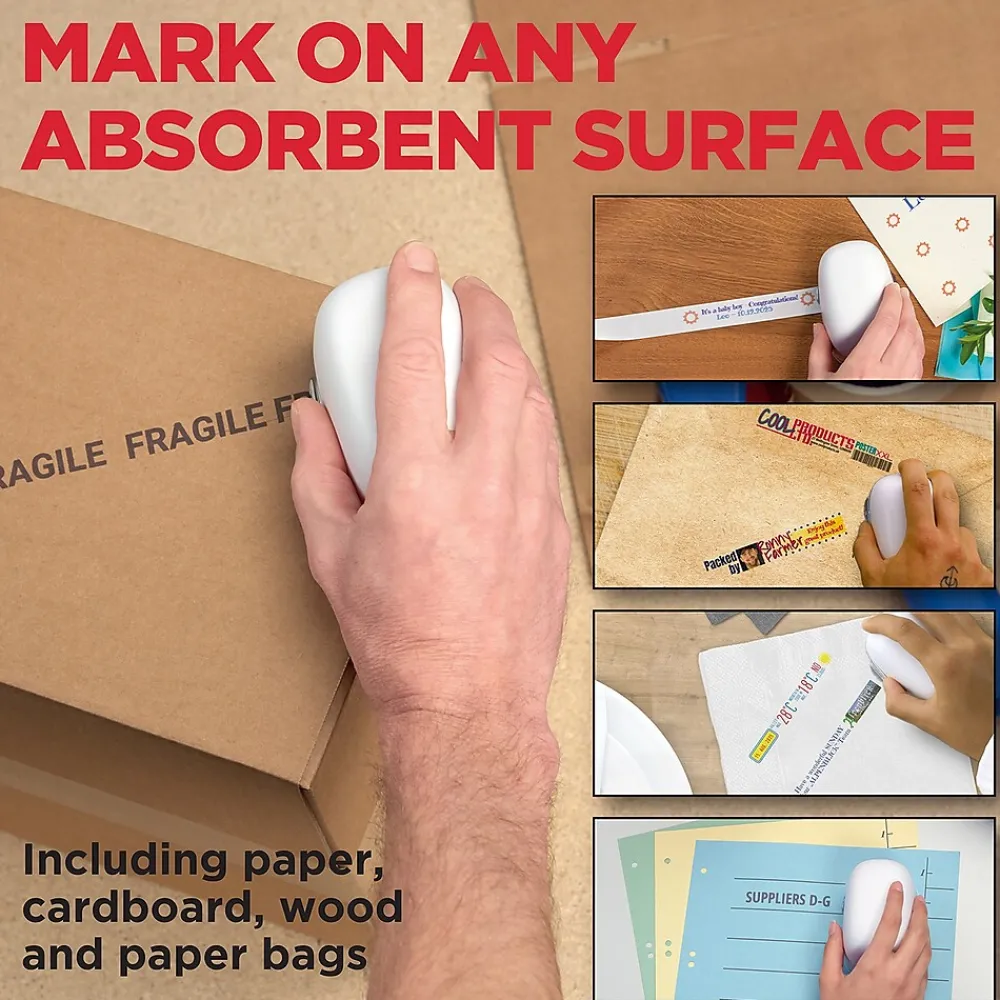 - Works on a variety of absorbent surfaces including paper, cardboard, wood and paper bags.