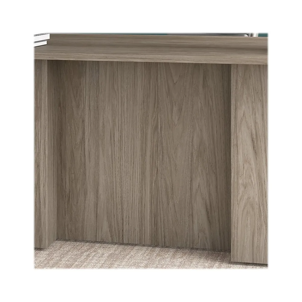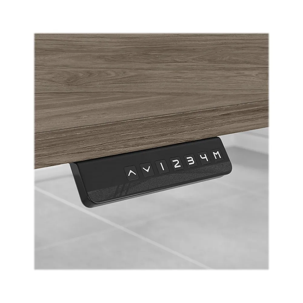 The Bush Business Furniture Office 500 72″W height-adjustable U-shaped executive desk with drawers offers an ergonomic workspace with professional style. With its impressive breakfront design and the flexibility to sit or stand at the push of a button, this executive desk presents a perfect workspace for the modern professional. Take a prominent position in your private office as you spread out on a spacious wraparound desk with built-in wire management. The 48″W x 24″D height-adjustable standing desk lifts anywhere from 27″ to 47″ and includes four presets that allow you to change positions quickly and easily throughout the day. Two lockable file cabinets fit under the fixed desktop for easy access to legal-, letter-, and A4-size paperwork and supplies. This adjustable desk with storage is tested to meet ANSI/BIFMA standards for safety and performance.