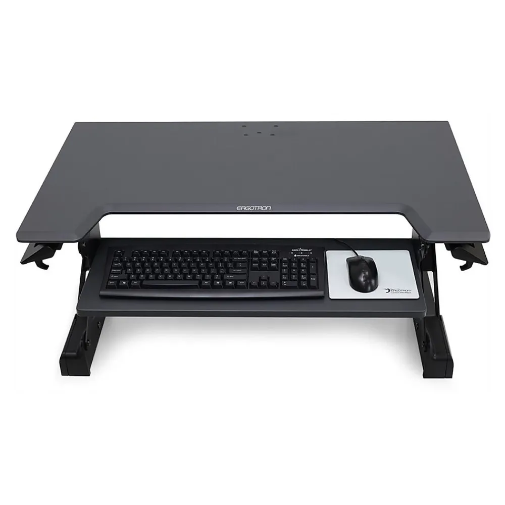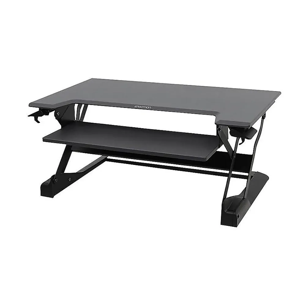 Work in a more active and dynamic manner with this adjustable desktop workstation. The smooth lift creates an additional 15 inches of vertical workspace, and the solid metal construction holds up to 40 pounds of computer necessities. This Ergotron sit-stand desktop workstation comes fully assembled, so installation takes only minutes.