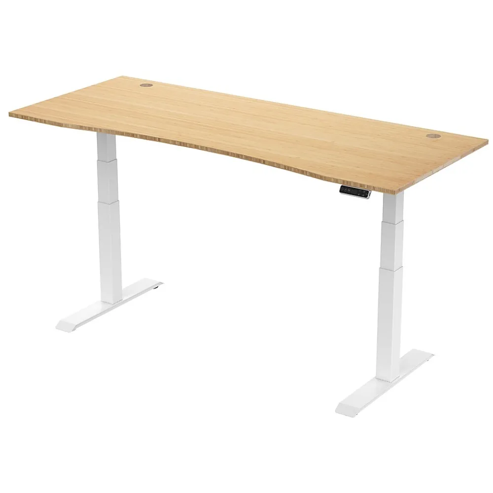 The FlexiSpot E7 is a height-adjustable standing desk with extra-large top made of real bamboo. The top sits on a powerful two-motor base that lifts up to 355 lbs. Holeless columns are not just attractive, but also prevent the buildup of grease on the moving stages. The anti-collision feature reverses the direction of the desk if an object is struck during movement.